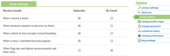 By the default settings, whenever people shout at you, you’ll be emailed. This is similar to Facebook, and will fill up your inbox quickly. If you don’t mind it and want emails all day long, have at it. Otherwise, you can control your email settings pretty easily on the email settings page: