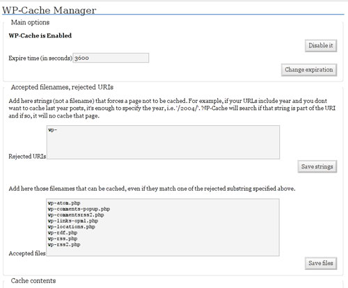 1 – Install and configure the WP-Cache plugin (For WordPress Blogs). WP-Cache is a brilliant plugin that keeps most of your stuff that will load in a static file rather than loading and compiling the PHP on every page request. For the more tech savvy, feel free to tweak to your heart’s content: