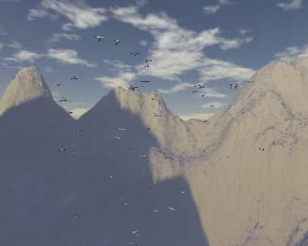 This got me to thinking more about flocking behavior. Craig Reynolds was the first to simulate this behavior using computer graphics in 1986. The basic steps of flocking consist of separation, alignment, and cohesion. These simulations mimic the movement of real life flocks of birds very well (created by Paul Richmond):