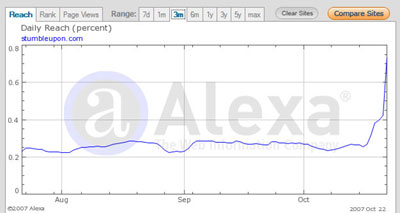 SU has really been on a tear lately. According to Alexa, Stumbleupon has never ranked higher in its history, currently ranked 170 . It is also becoming more mainstream, now having over 3.7 million users (consider they only had 1 million in July 2006).
