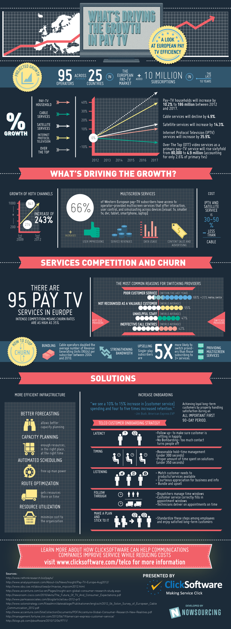 Then we take a look at what’s driving the pay-TV growth in Europe. In the States, pay-TV seems to be on the decline, but is booming in Europe. Why is this the case? This infographic takes a look at the factors that are increasing pay-TV subscribers in Europe.